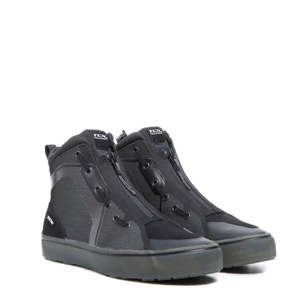 Ikasu Waterproof motociklističke cipele su certificirane i vodootporne zahvaljujući T-DRY vodootpornoj membrani, a također imaju isti ležerni izgled i udoban kroj kao i tenisice, što ih čini savršenim za svakodnevnu upotrebu. Ojačanja s D30® umetcima na gležnju, zaštita na prstima i peti jamče maksimalnu zaštitu, dok OrthoLite® uložak s dugotrajnom i vrlo prozračnom amortizacijom čini ove cipele iznimno udobnima. Maksimalna zaštita zajamčena je posebnim Zplate® umetkom od lijevanog polimera, koji kombinira poprečnu krutost za maksimalnu sigurnost i uzdužnu fleksibilnost zahvaljujući svom Z-obliku. Zplate® omogućuje cipelama da prate sve prirodne pokrete stopala, kako tijekom vožnje tako i tijekom hodanja, istovremeno ga štiteći osiguravajući da se cipele ne zgnječe u slučaju udarca. Gornji dio od reflektirajuće mrežaste tkanine s umetcima od brušene kože ima bočne vezice i elastični prednji patentni zatvarač za lakše pristajanje. Groundtrax® potplat otporan na habanje karakterizira gazni sloj u obliku mozaika koji jamči maksimalno prianjanje na svakoj površini.
